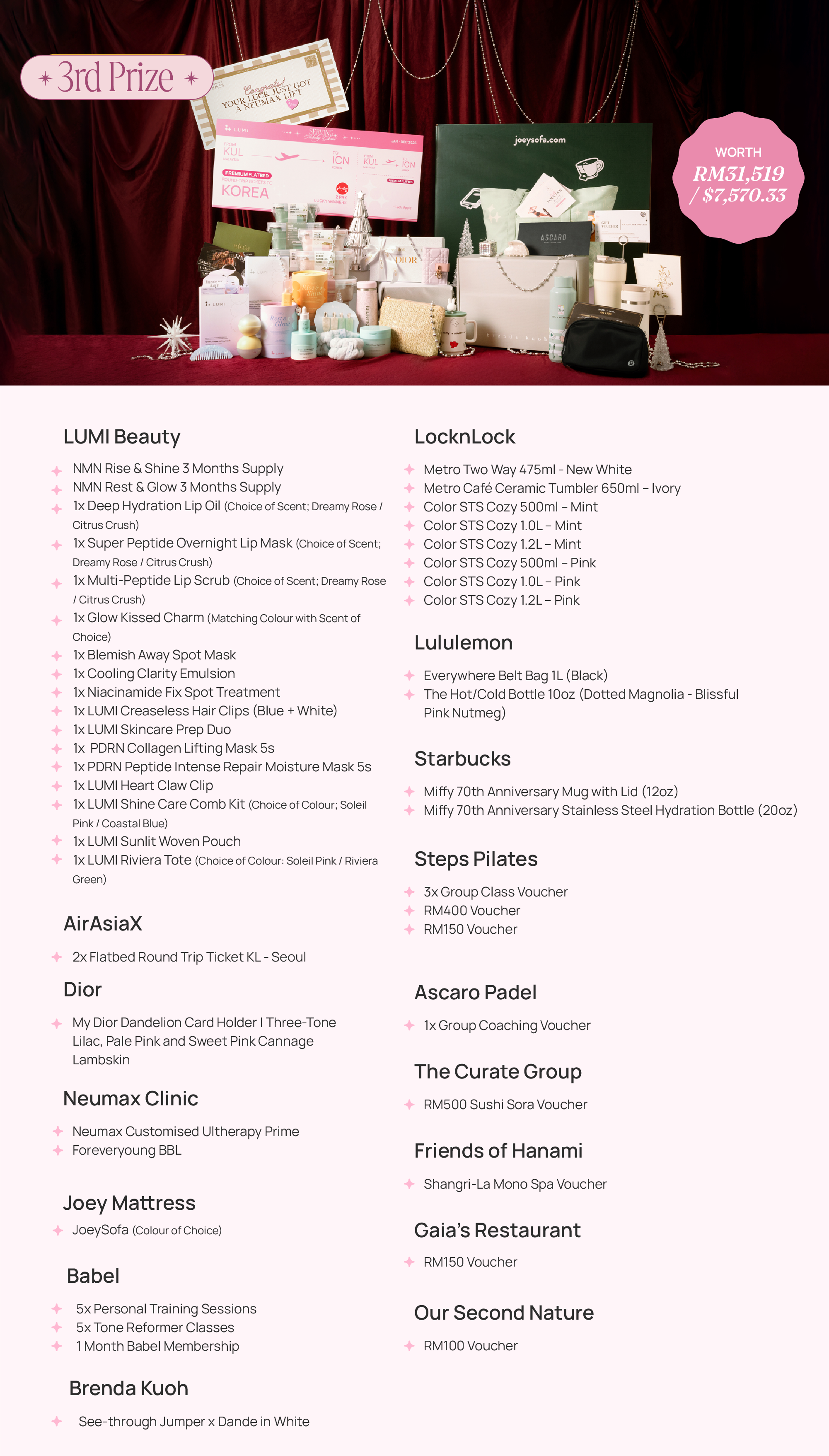 The giveaway will end on 11:59pm (GMT+8), 24th December 2025, and the winners will be announced on 29 December via @mylumibeauty Instagram Live. Time of the livestream will be announced soon so stay tuned to our social media platforms!