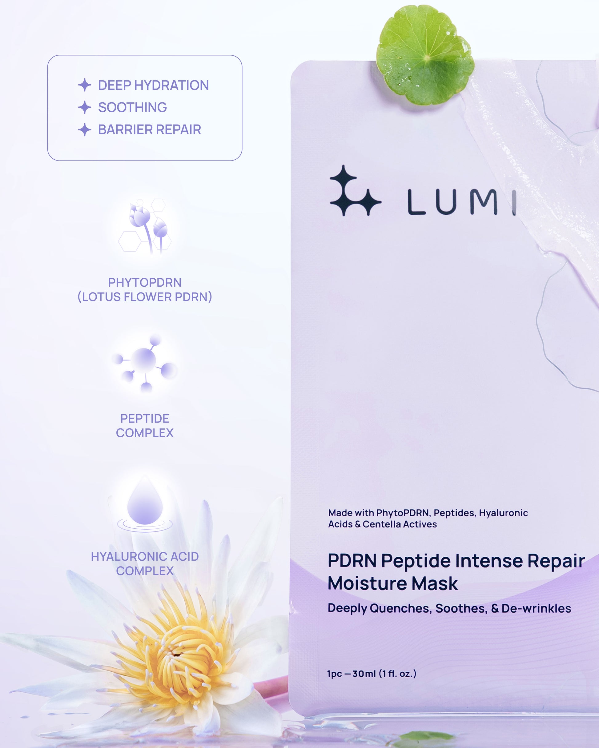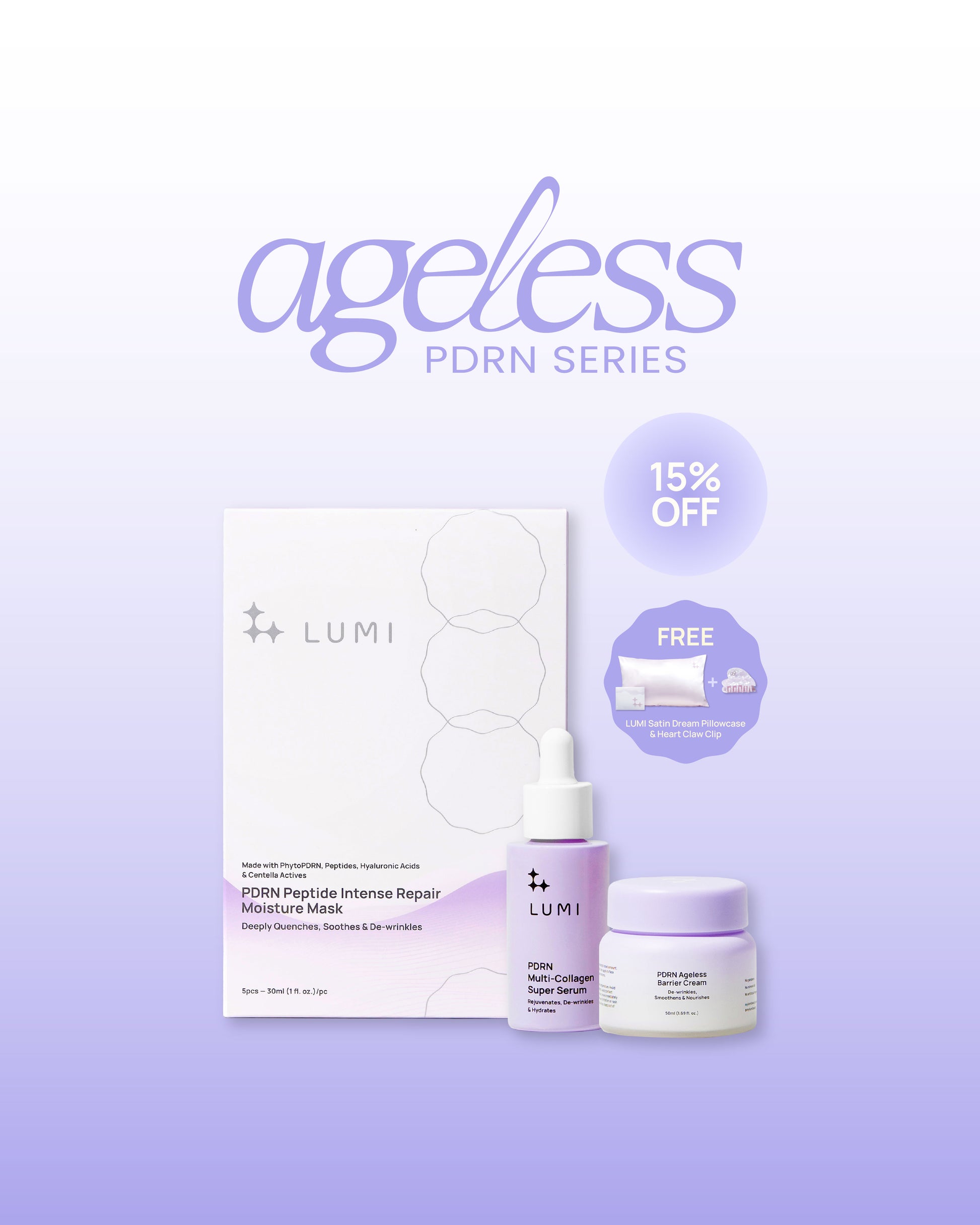 A PDRN-powered barrier-repair routine formulated to strengthen skin resilience and deliver deep, long-lasting hydration. Featuring the Multi-Collagen Super Serum, Ageless Barrier Cream, and Peptide Intense Repair Moisture Mask, this set supports skin recovery and comfort for a healthier, more balanced-looking complexion. Paired with a complimentary LUMI Satin Dreams Pillowcase and Heart Claw Clip.