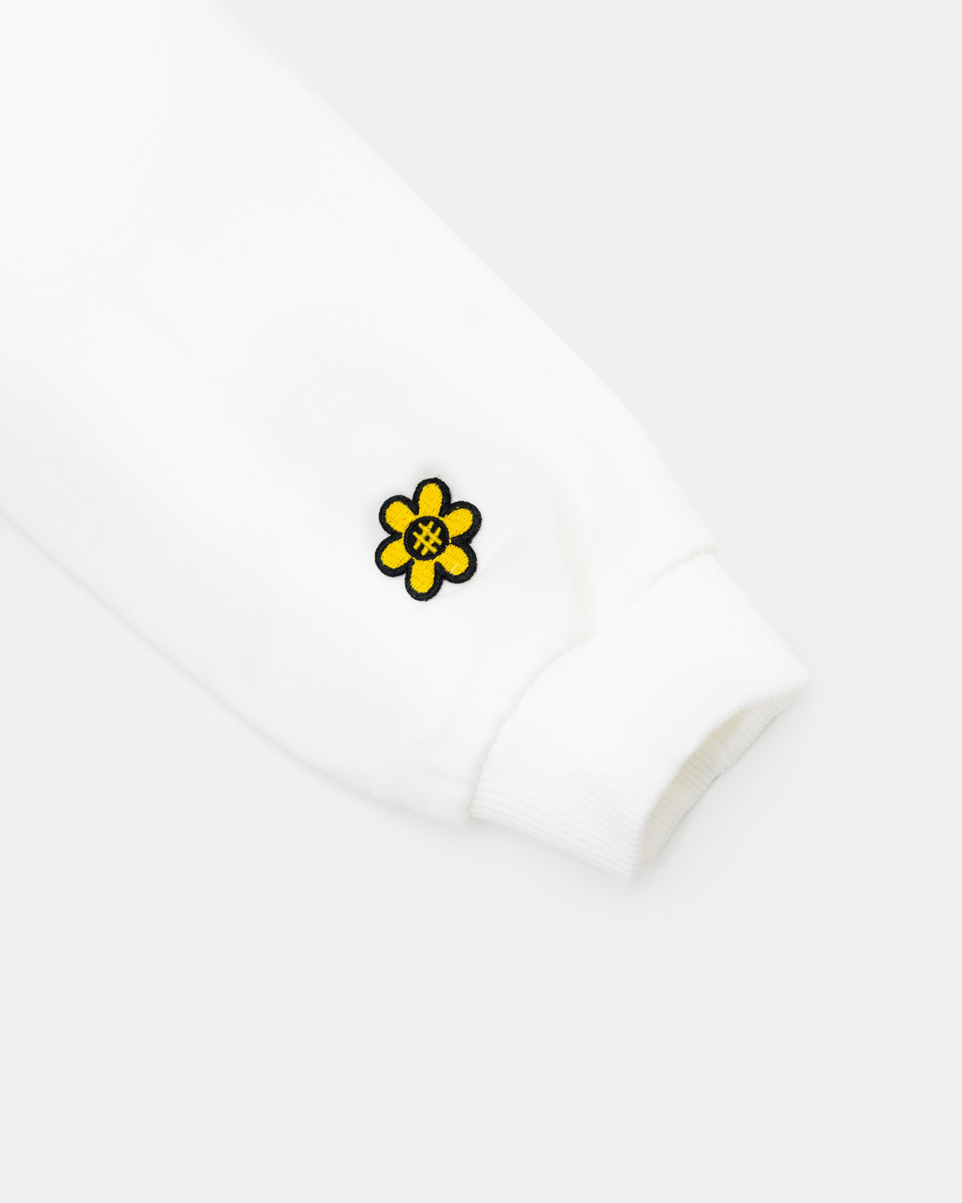 Slightly oversized fit long sleeve Polo Sweater in a heavy weight premium jersey cotton. Super soft, pre-shrunk, piece dyed and embroidered collaboration logo for a touch of colour.