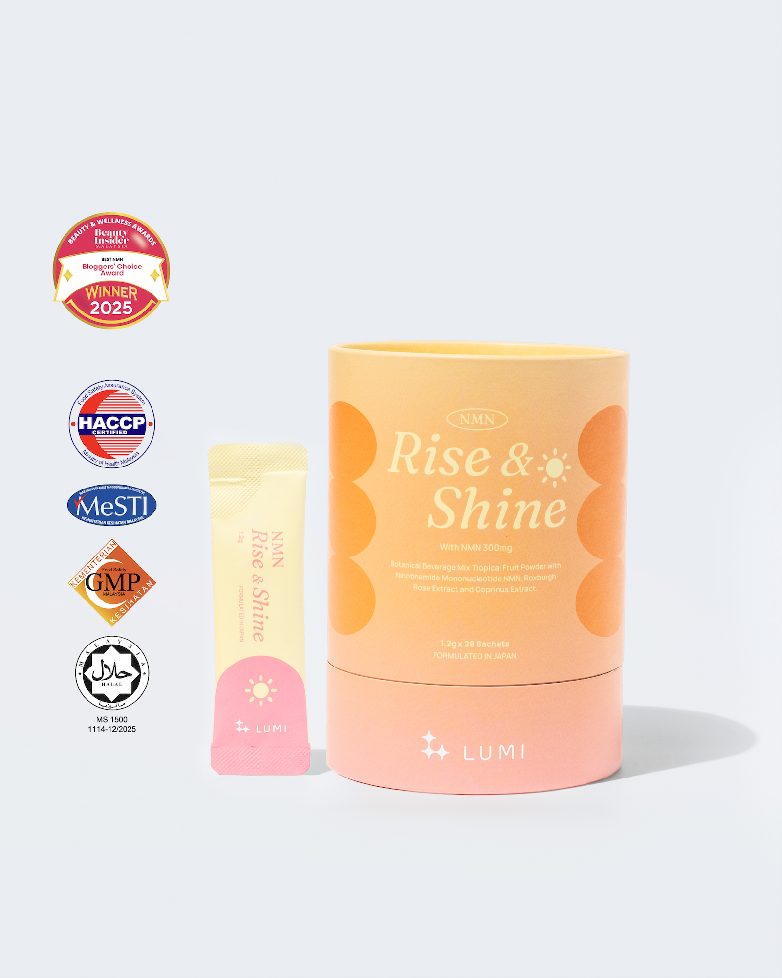 6.Is our NMN certified? LUMI Rise & Shine NMN is MeSTI, GMP, and HACCP certified.