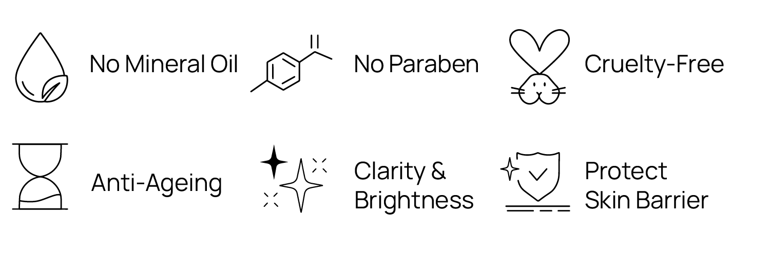 • Boasts anti-ageing ingredient such as Peony Root, Black Truffle and Japanese Plum Extracts, known for their ability to promote skin renewal by diminishing the look of fine lines and wrinkles.
